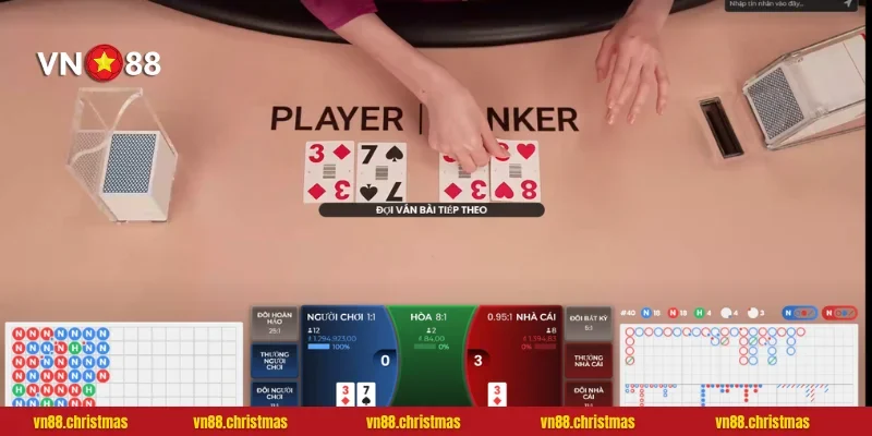 Điểm đặc biệt: Hỗ trợ bảng thống kê 10-20 ván gần nhất, giúp bạn soi cầu Baccarat dễ dàng. Nhảy vào bàn VIP, dealer còn chào mời bằng tiếng Việt thân thiện. Mỗi phòng có tối đa 60 người cùng chơi, tạo không khí náo nhiệt như Macau thật.