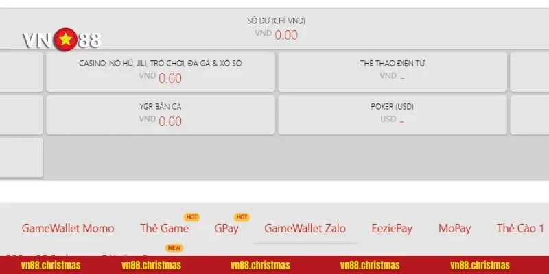 Hệ thống VN88 cung cấp nhiều phương thức nạp tiền để đáp ứng nhu cầu của người chơi. Mỗi phương thức có những ưu điểm riêng phù hợp với từng đối tượng.