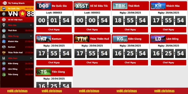 Hình thức truyền thống Việt Nam tại VN88 bao gồm đầy đủ ba miền Bắc, Trung và Nam với lịch quay thưởng hàng ngày, đúng theo kết quả chính thức. Người chơi có thể đặt cược vào nhiều hạng mục quen thuộc như lô, đề, lô xiên, đề xiên, lô kép, đầu, đuôi và nhiều dạng cược khác.